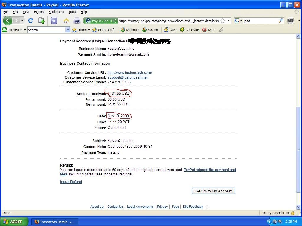At any rate, here's my first payment from FC [apologies if this is in fact a double post]: