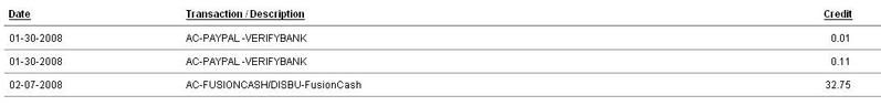 02/07/2008     Deposit     AUTOMATED CREDIT FUSIONCASH/DISBU FUSIONCASH           $109.70