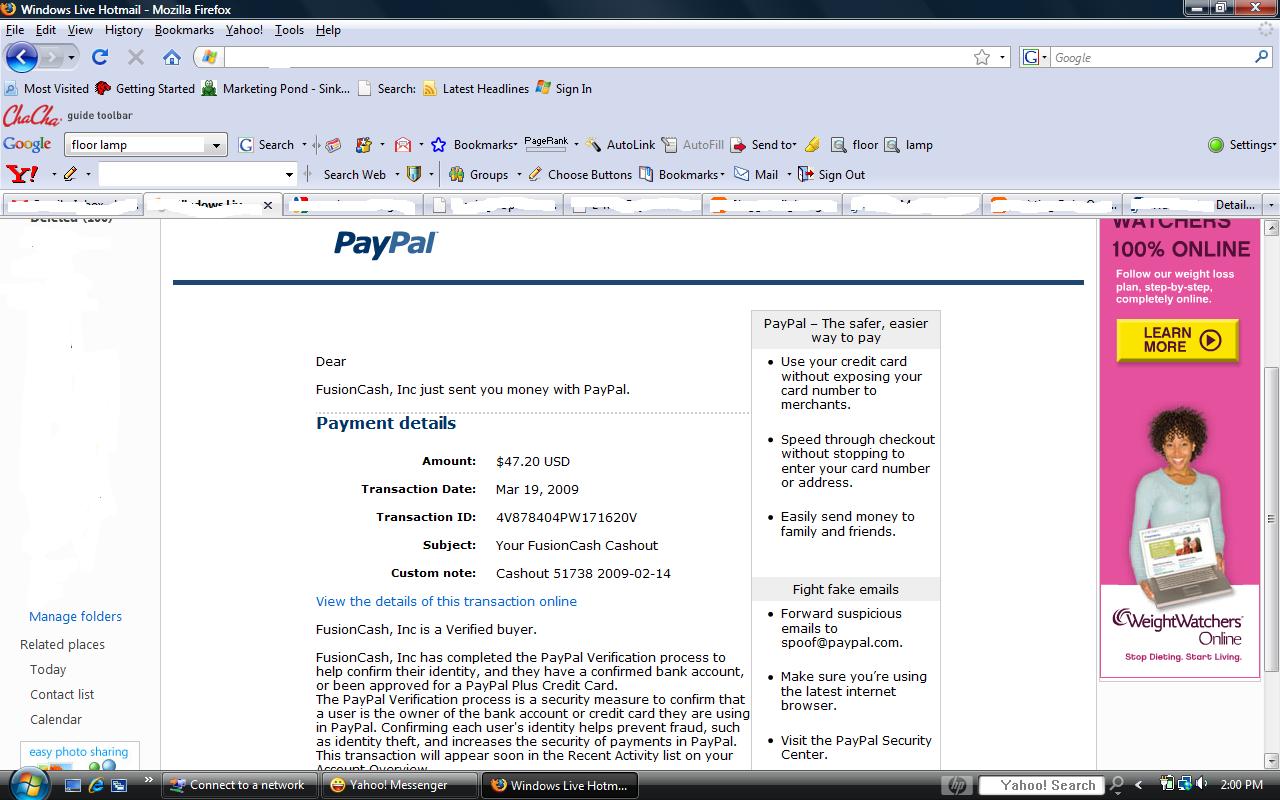 Subject:   Your FusionCash Cashout